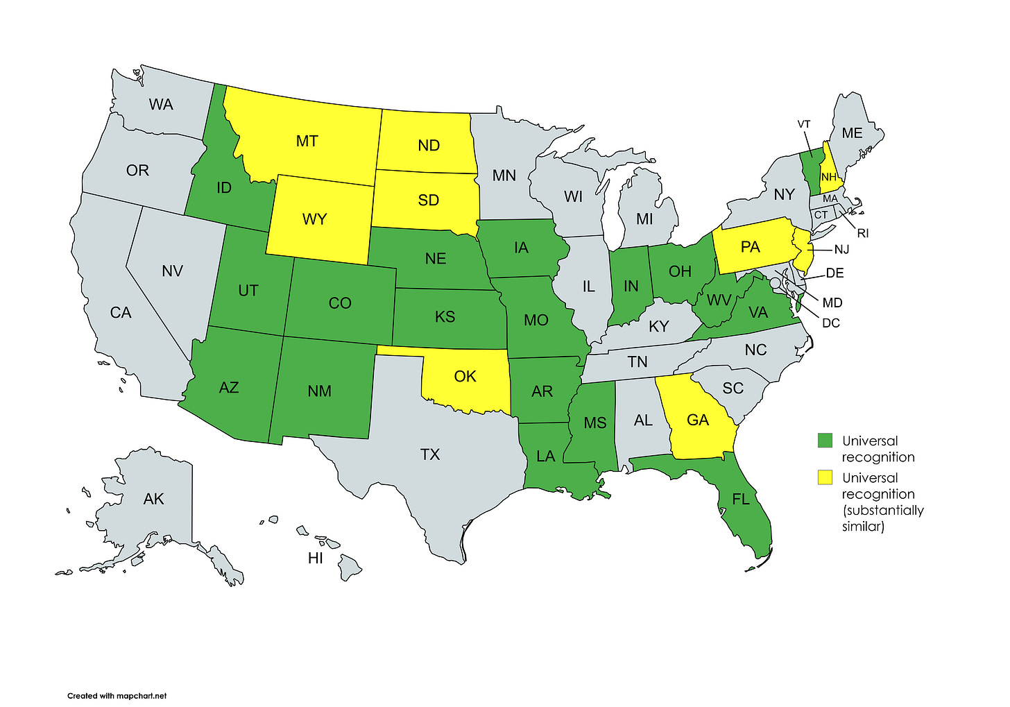 Texas is currently considering SB716 that would enact universal recognition in the Lonestar State.